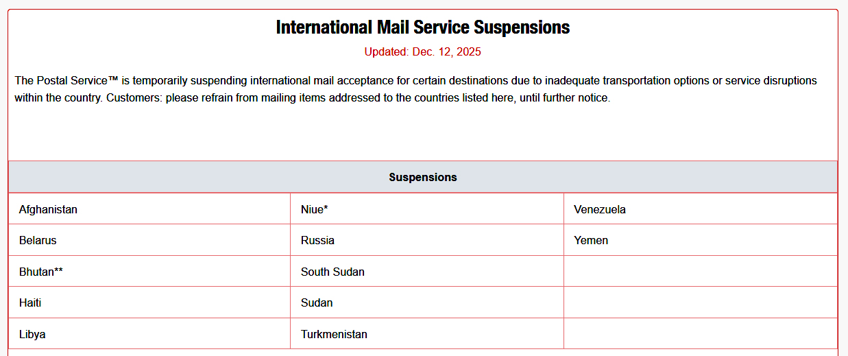 Due to the current conditions with geopolitical conflict – there are temporary restrictions with the US Postal Service into some countries.